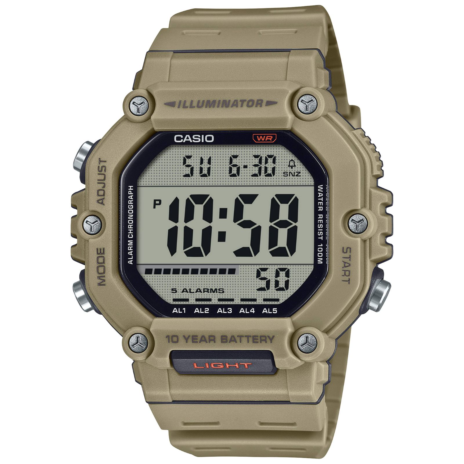 Štoperica, alarm, kalendar, osvjetljenje, baterija 10 godina, vodootporan.